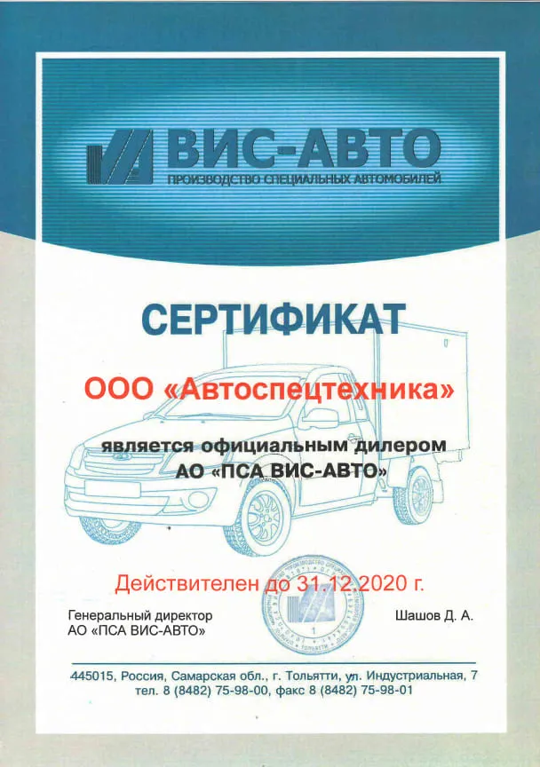ООО «Автоспецтехника» является официальным дилером О «ПСА ВИС-Авто» (г. Тольятти).