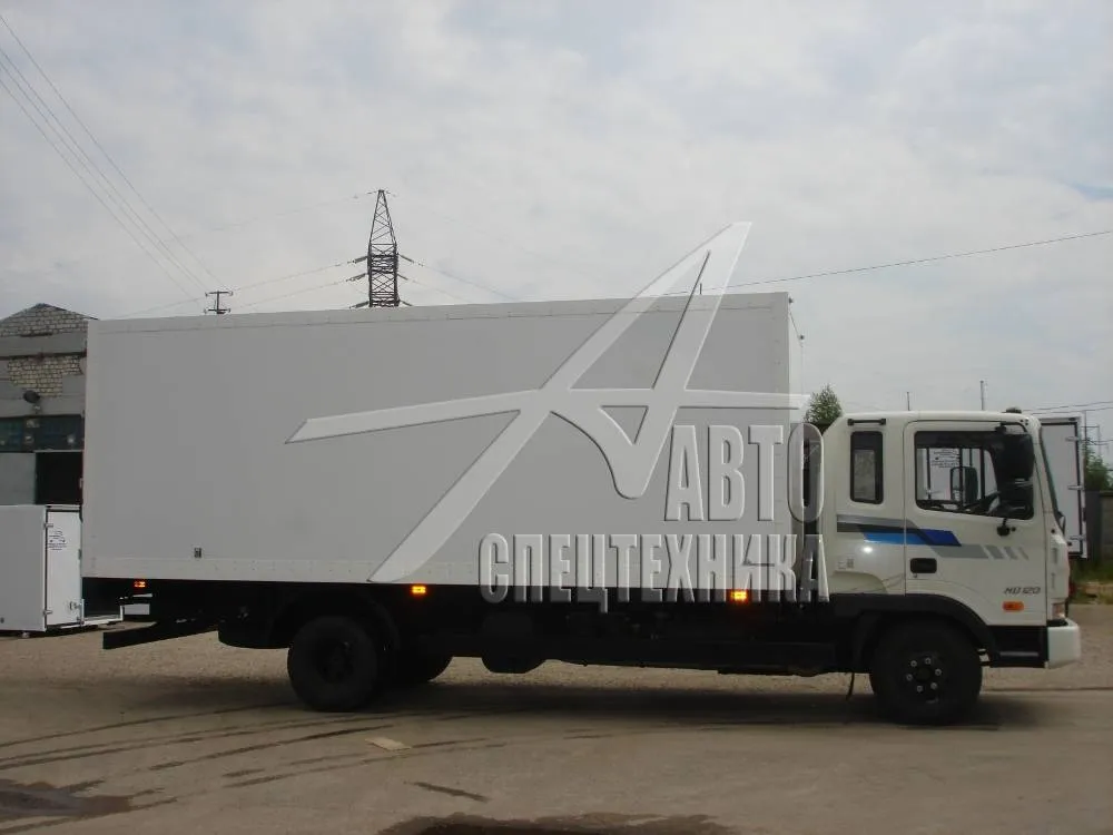 Тушевоз Hyundai HD-120 - среднетоннажный грузовой автомобиль с полной массой 12 000 кг и грузоподъёмностью фургона 6 200 – 6 500 кг. Перевозка туш в подвешенном состоянии в Омске. Грузоподъёмность тушевоза ниже составляет 2/3 от г/п фургона.